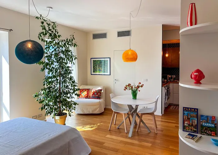 The 1-room Suite Volver - Exclusive Design Apartment Parma offers proximity to such tourist attractions as Kyu Shin Do Kai, situated nearly a 5-minute walk away. This 45 m² apartment features Wi-Fi, along with parking for guests travelling by car.